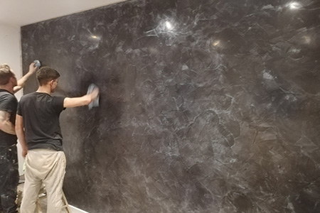 Venetian plastering - Black slate effect venetian with silver veins
